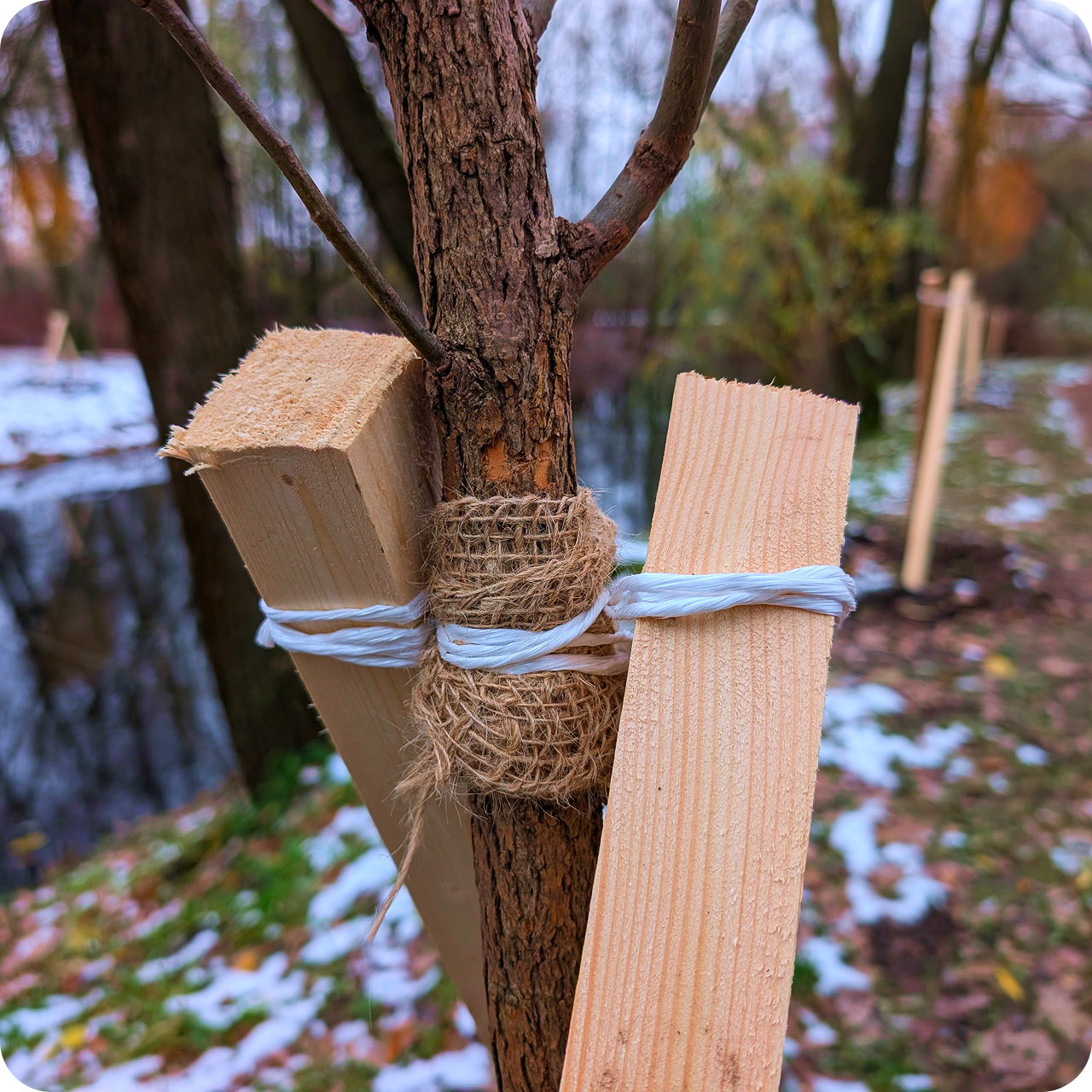 Укрытие: в регионах с суровыми зимами или при выращивании молодого дерева, рекомендуется утеплить корни и основание ствола. Для этого используют смешанный слой мульчи — торфа, опилок, листвы или соломы. Он защищает корни от морозов и помогает сохранить влагу в почве.