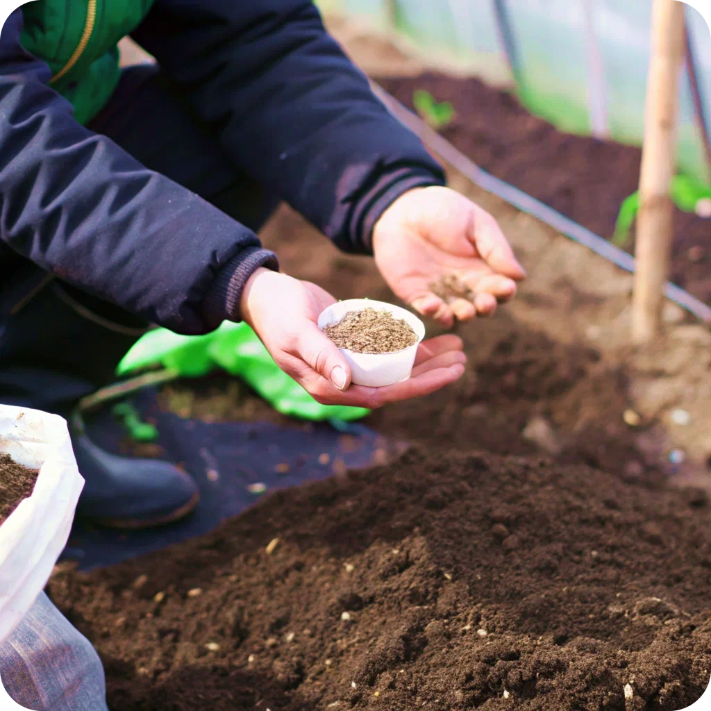 Фосфор отвечает за развитие корней и работу бактерий, которые обогащают почву азотом. Его лучше вносить ещё до посева — аммонизированный или двойной суперфосфат (30 г и 12–15 г на м² соответственно). На кислых почвах подходят костная и фосфоритная мука.