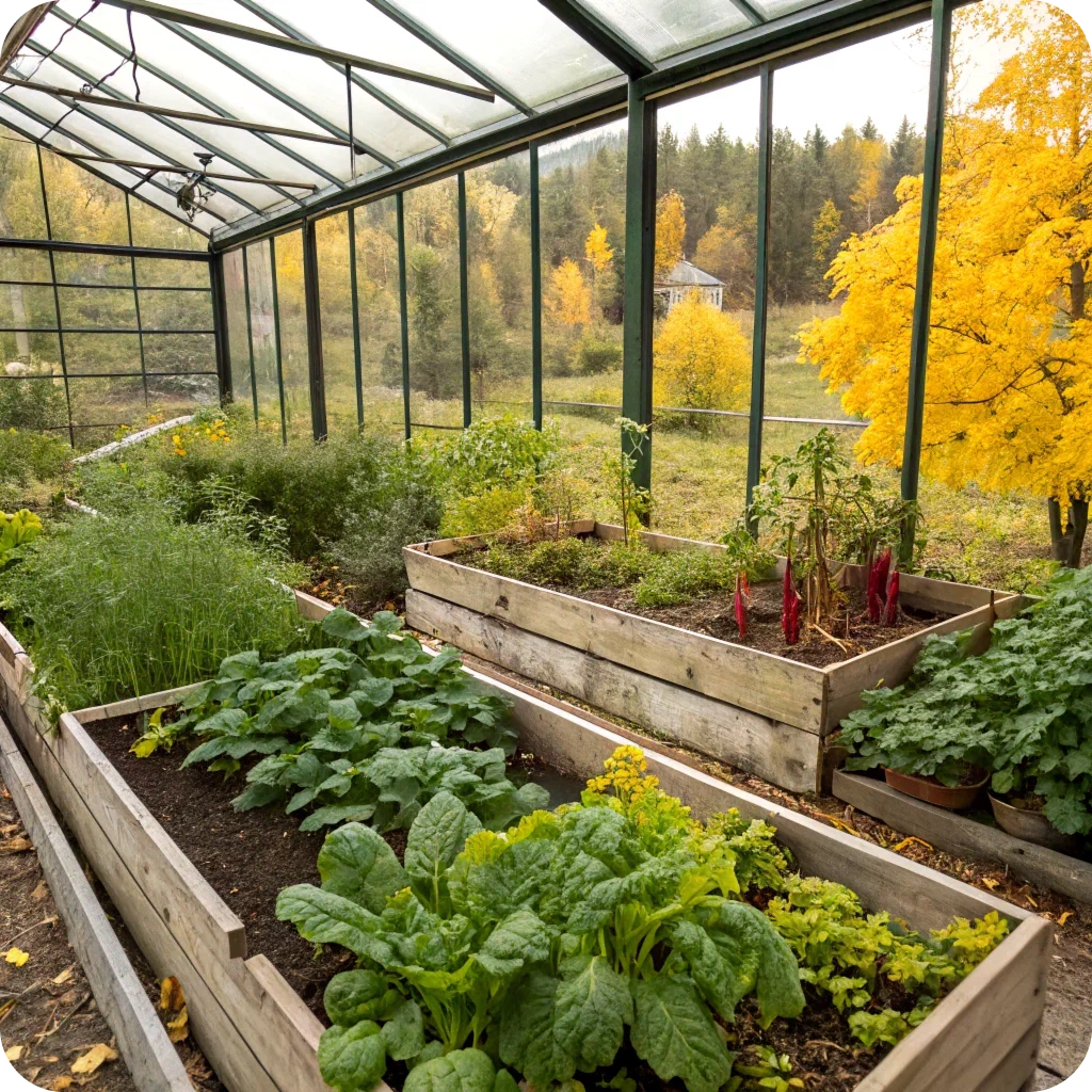 Теплица даже без отопления продолжает хранить тепло и защищать посадки от ночных заморозков. Осенью световой день всё ещё достаточно длинный, а многие культуры имеют короткий срок вегетации. Это значит, что при правильном подходе можно успеть снять дополнительный урожай свежей зелени и овощей.
