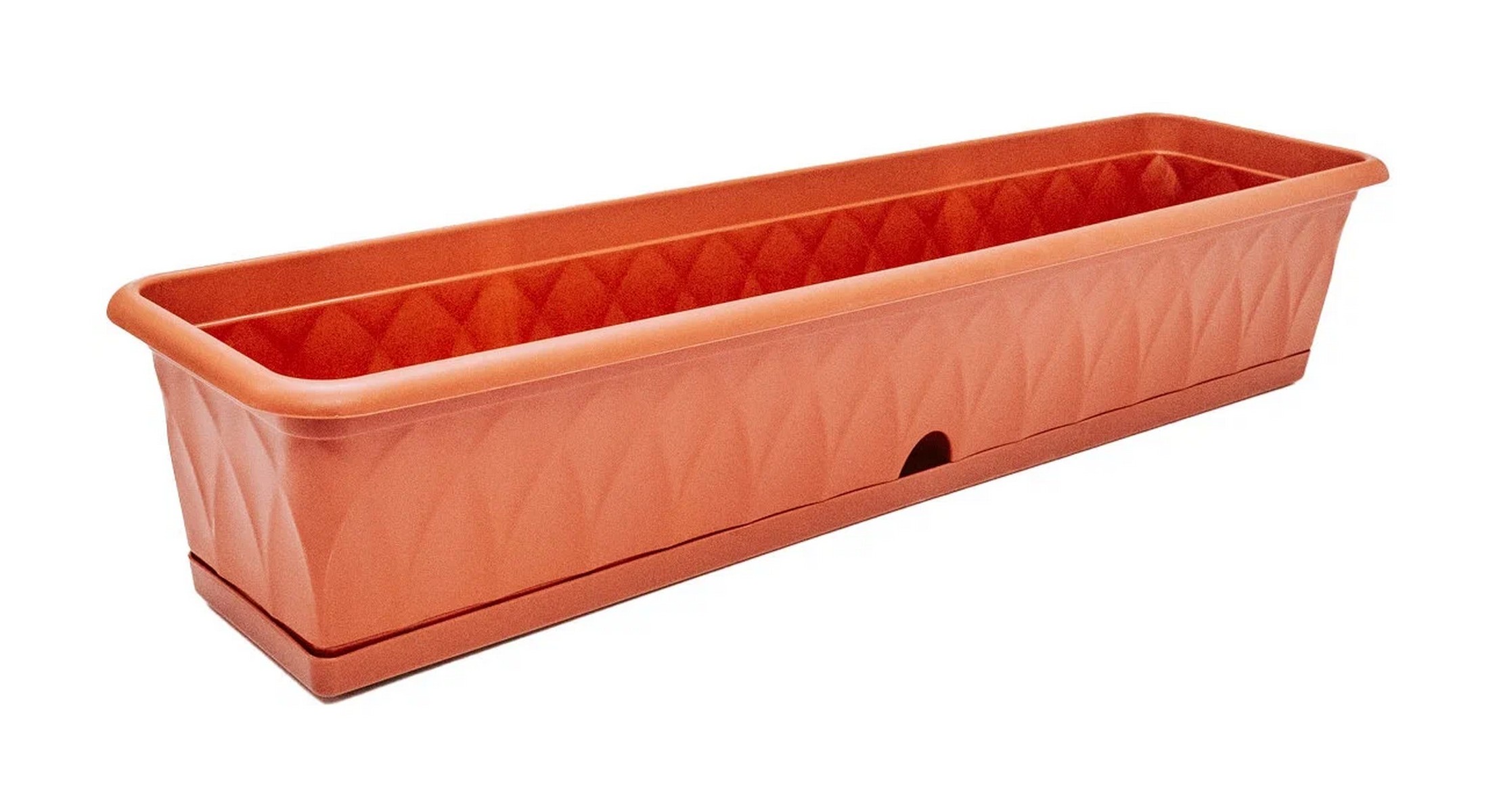 Балконный ящик «Прованс» для растений имеет современный, минималистичный дизайн и станет прекрасным решением для Вашего интерьера. Он будет прекрасно смотреться в саду, доме, комнате и подчеркнет красоту выращенных цветов. Благодаря прямоугольной форме ящик отлично подойдёт для размещения на подоконниках, узких полках или специальных кронштейнах (приобретаются отдельно). Балконный ящик, изготовлен из высококачественного, надёжного и крепкого пластика, который абсолютно безопасен для использования, а также не имеет химического запаха. Ящик комплектуется поддонном, он собирает излишки воды при поливе, что позволяет содержать место размещения ящика в чистоте. В поддоне предусмотрено отверстие для прикорневого полива.