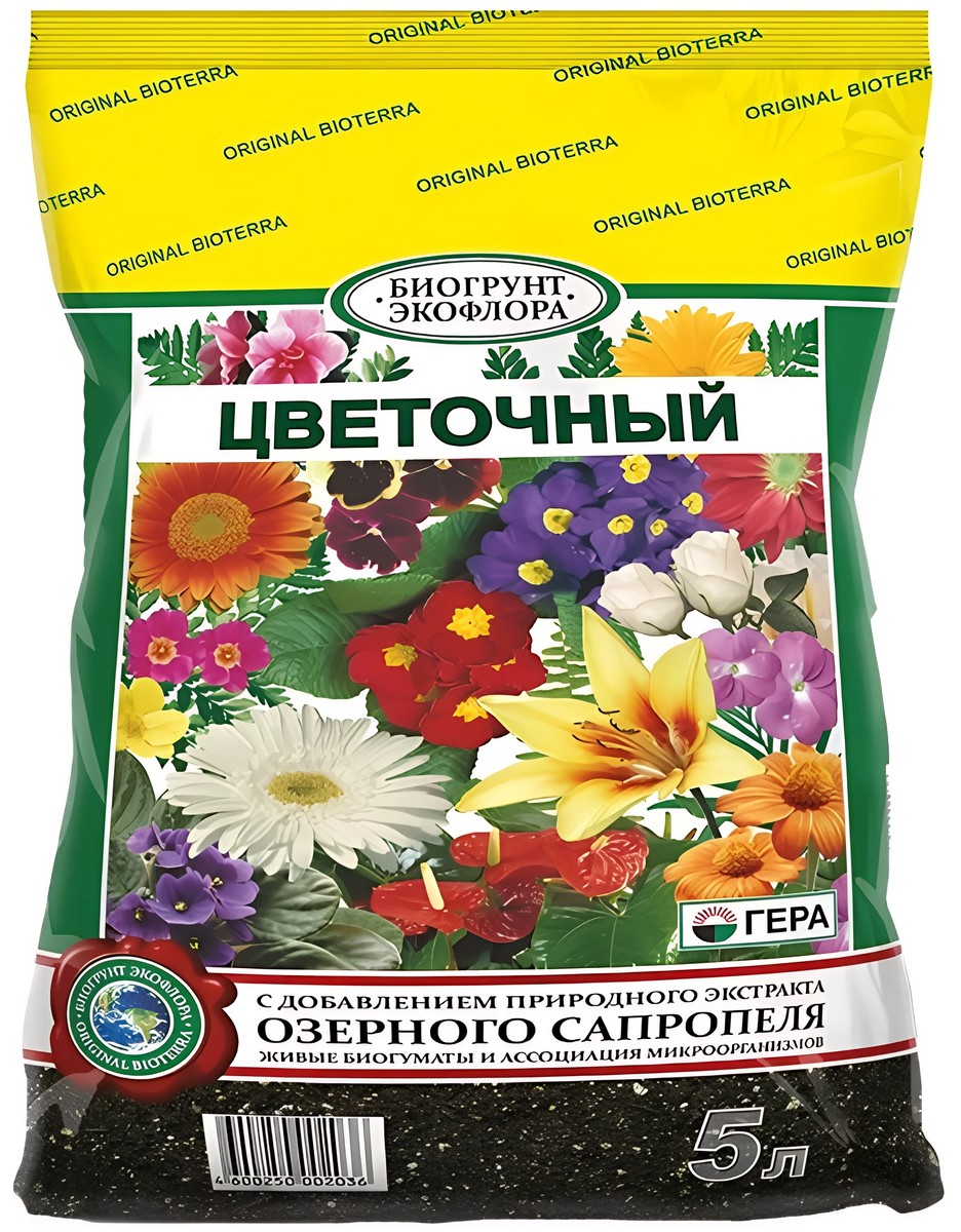 «БИОгрунт ЭкоФлора Цветочный универсальный» – полностью готовый к применению грунт для выращивания цветочно-декоративных растений комнатного цветоводства, в зимнем саду, на балконе и в открытом грунте; выращивания цветочной и овощной рассады; выгонки луковичных растений; проращивания семян; мульчирования (укрытия) почвы под растениями; посадки, пересадки, подсыпки или смены верхнего слоя почвы у растущих цветов и растений.