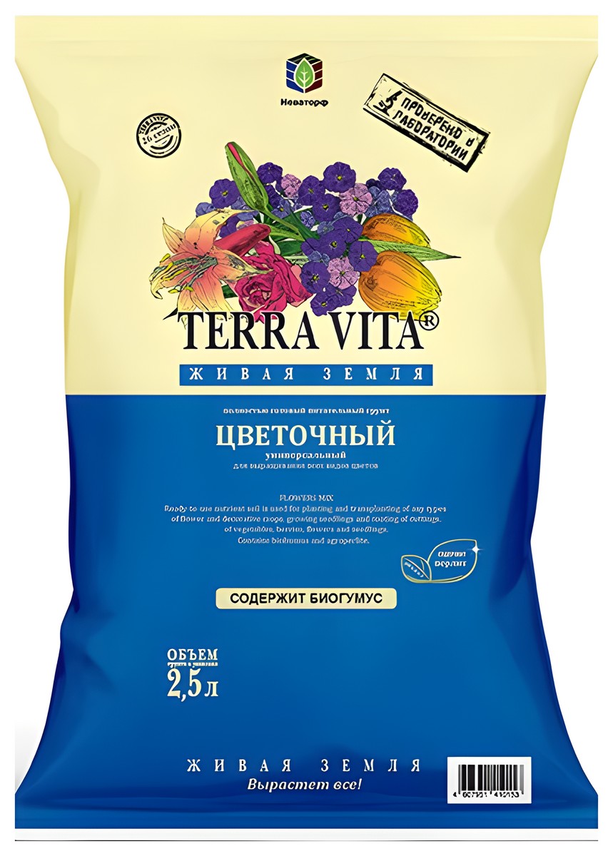 ----Грунт Terra Vita Живая Земля цветочный, 2,5 л