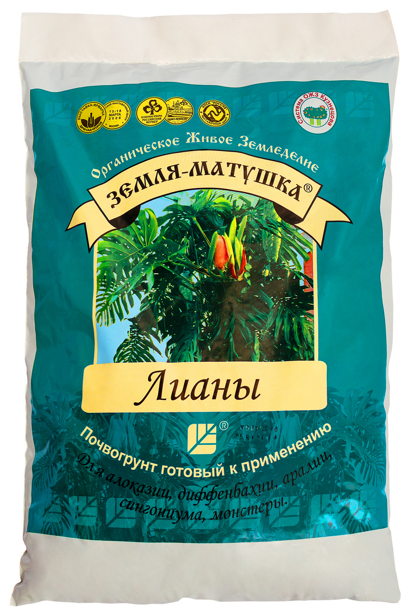 Полностью готовый почвогрунт, состав которого наилучшим образом сбалансирован для посадки и пересадки различных видов лиан (монстеры, филодендроны, эпипремнумы, сциндапсусы), алоказии, аралии, диффенбахии, сингониума. Этой группе растений необходим рыхлый нейтральный грунт, хорошо обеспеченный элементами питания. Благодаря обогащенному составу почвогрунт полноценно питает растение необходимыми макро- и микроэлементами. Эликсир плодородия Гуми и пролонгированное удобрение Хозяин-Батюшка ускоряют рост, защищают растение от стресса (пересадки, засухи, заморозков), мощно повышают урожайность и улучшают декоративные качества цветочных культур. Дружественные бактерии защищают растение от болезней на всех стадиях роста. Почвогрунт соответствует технологии ОЖЗ (Органическое Живое Земледелие) – безопасен для здоровья человека и животных.