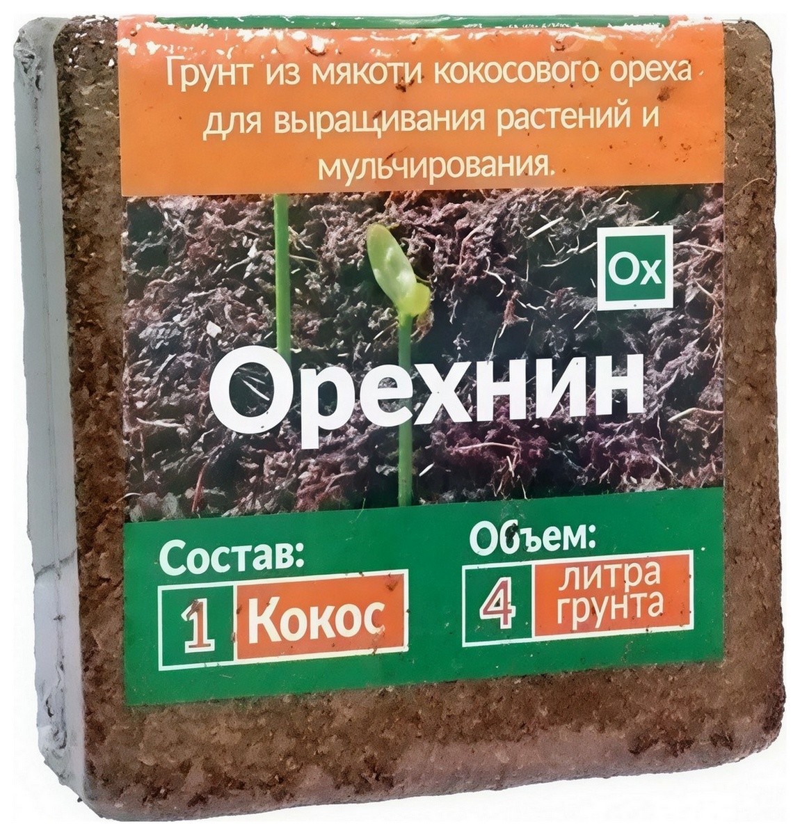 Орехнин – это экологически чистый органический материал, не содержит химических примесей, изготовляется из скорлупы и волокон кокосового ореха без клея и пропитки. Орехнин улучшает структуру, воздухоемкость, пористость грунта; увеличивает действие удобрений; препятствует слёживанию и удерживает влагу в почве; стимулирует развития корневой системы; повышает урожайность культур; субстрат препятствуют развитию патогенных микроорганизмов. рН нейтральный. Орехнин стойкий к разложению, в течение 5 лет сохраняет физико-химические свойства, не уплотнятся и не снижает качеств влаго и воздухоёмкости. Грунт из мякоти кокосового ореха – идеален для рассады, проращивания семян, укоренения черенков и саженцев; приготовления питательного почвогрунта для фиалок, орхидей, пальм и др.; мульчирования; выращивание овощей и ягод методом гидропоники; для хранения луковичных цветов и корней саженцев.
