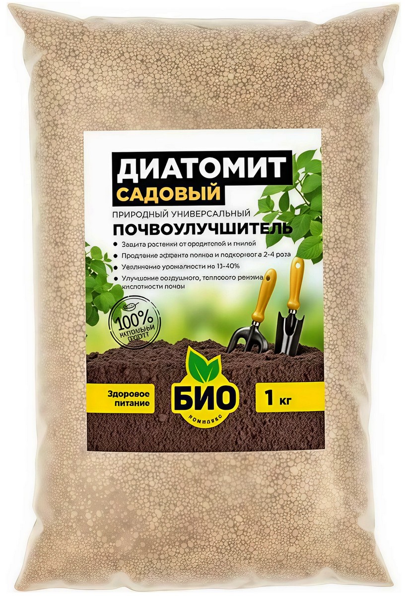 Природный почвоулучшитель из кремнистых отложений диатомовых водорослей. БИО-комплекс Диатомит Садовый защищает растения от улиток, слизней, грибов и плесени, удерживает влагу в почве, снижает количество нитратов, тяжелых металлов, питает растения (органический кремний и др. микроэлементы в биодоступной форме легко усваиваются), укрепляет корни, стебли и листья растений, защищает растения от стрессов, улучшает воздушный, тепловой режим, снижает кислотность почвы, стимулирует развитие почвенной микрофлоры, способствует переходу недоступных растениям почвенных фосфатов в доступные формы.