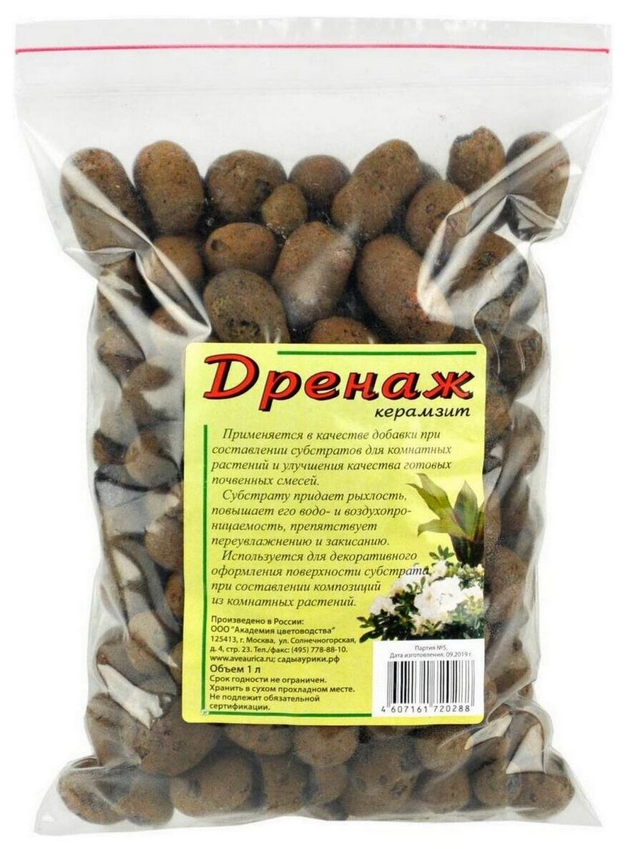 Керамзитовый дренаж оптимизирует влагообмен и помогает растениям перенести периоды вынужденной засухи. Керамзит химически инертен, имеет нейтральный pH, не деградирует и не имеет запаха. Керамзит может использоваться как добавка для вентилирования тяжёлых глинистых почв, что позволяет растениям получить большее количество кислорода. Оптимизируется воздухообмен. Кроме того, керамзитовый дренаж препятствует закислению грунта, исключает появление на поверхности грунта плесени и мхов. Дренаж керамзитовый «Сад Чудес» мелкий - размер шариков 4-10 мм - предназначен для выращивания комнатных растений, рассады овощных и цветочно-декоративных культур в качестве добавки к грунту.