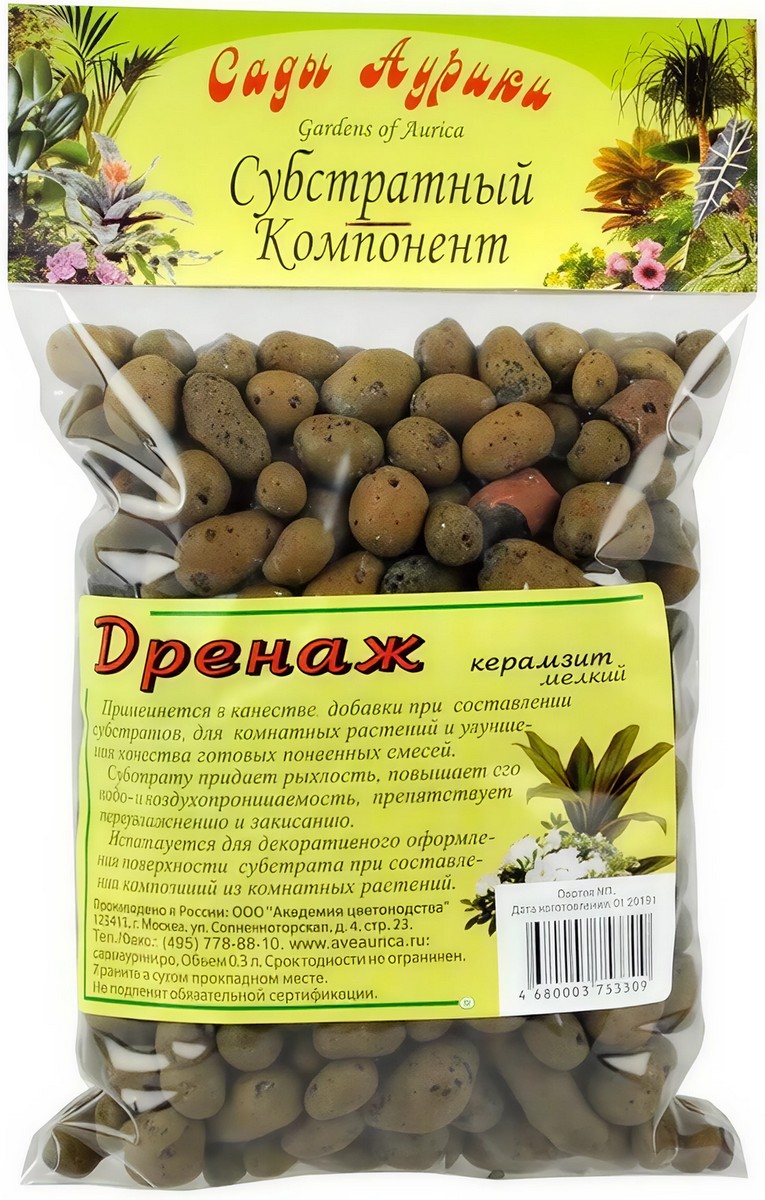 Керамзитовый дренаж оптимизирует влагообмен и помогает растениям перенести периоды вынужденной засухи. Керамзит химически инертен, имеет нейтральный pH, не деградирует и не имеет запаха. Керамзит может использоваться как добавка для вентилирования тяжёлых глинистых почв, что позволяет растениям получить большее количество кислорода. Оптимизируется воздухообмен. Кроме того, керамзитовый дренаж препятствует закислению грунта, исключает появление на поверхности грунта плесени и мхов. Дренаж керамзитовый «Сад Чудес» мелкий - размер шариков 4-10 мм - предназначен для выращивания комнатных растений, рассады овощных и цветочно-декоративных культур в качестве добавки к грунту.