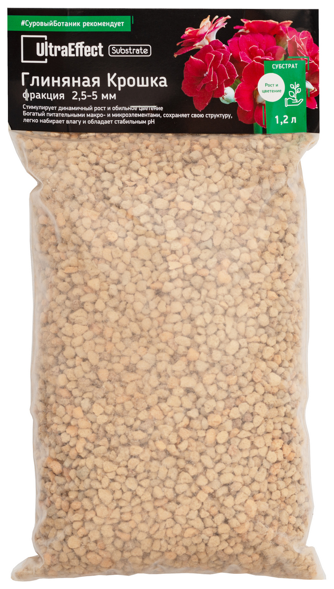 Глиняная крошка 2,5-5 мм UltraEffect (УльтраЭффект) для растений - это уникальная добавка для составления любого грунта с повышенным содержанием аморфного кремния. Благодаря высокой степени пористости является буфером для макро- и микроэлементов, которые способствуют быстрому росту и высокой выживаемости. Способствует улучшенному влаго- и воздухообмену в субстрате. Глиняная крошка Ultra Effect+ (УльтраЭффект)сохраняет свою структуру, легко набирает влагу и обладает стабильным рН. Широко применяется в качестве дренажа и прекрасно с этой задачей справляется! Препятствует образованию плесени, закислению и комкованию субстрата. Субстрат полностью готов к использованию, не требует стерилизации.