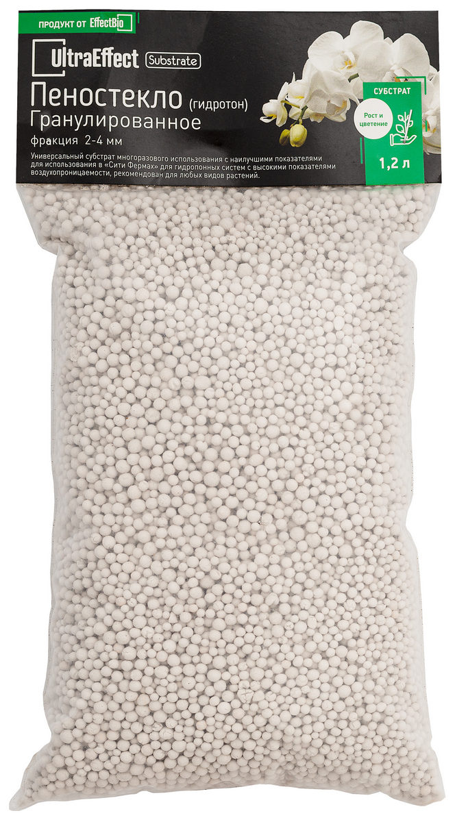 Пеностекло для растений UltraEffect 2-4 мм - это универсальный долговечный нано субстрат и уникальный субстратный компонент для агропромышленного применения и в частном подсобном хозяйстве. Пеностекло для растений UltraEffect 2-4 мм - производится в России, только из 100% натуральных ингредиентов без применения химии. Субстрат полностью готов к использованию, не требует стерилизации. Субстрат сохраняет свою структуру, набирает влагу и обладает стабильным рН. Благодаря высокой степени пористости является буфером для макро- и микроэлементов, которые способствуют быстрому росту и высокой выживаемости. Препятствует загниванию корневой системы, переливу и уменьшит частоту поливов. При изготовлении субстрата применяются только натуральные природные ингредиенты. Идеально подходит для гидропоники, мульчирования, выращивания и пересадки мелких, средних и крупных орхидей всех видов или приготовления субстрата для эпифитных и литофитных растений: орхидные, ароидные, бромелиевые, папоротники, кактусы, суккуленты и др.