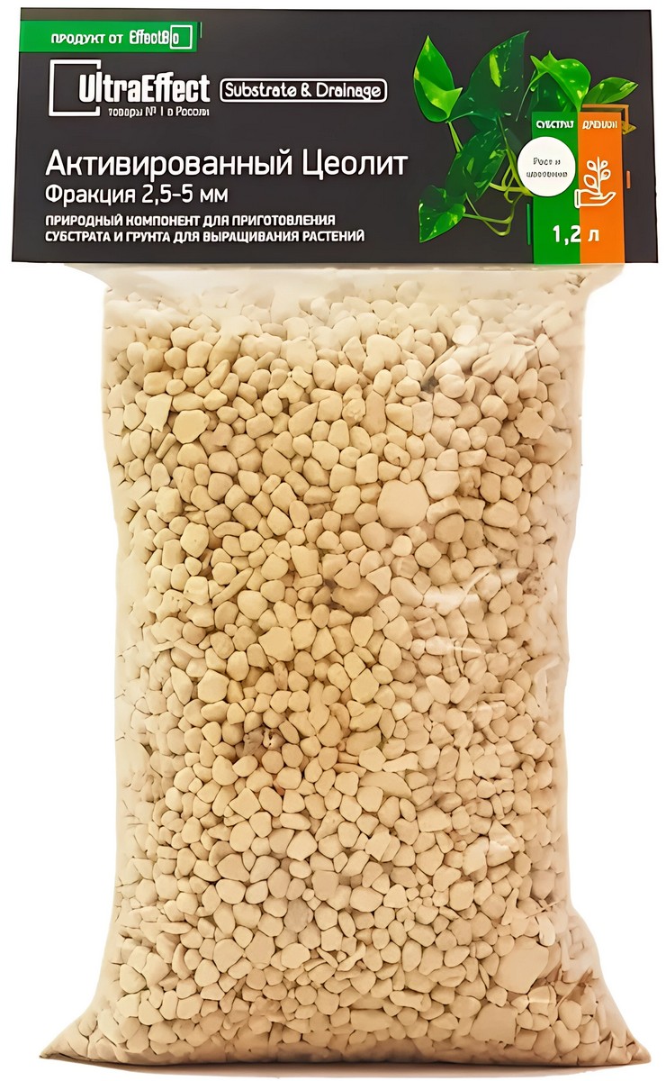 Цеолит Активированный UltraEffect 2,5-5 мм - это уникальная добавка для составления любого грунта с повышенным содержанием аморфного кремния, рекомендован для приготовления грунта и почвосмеси для выращивания орхидей всех сортов и видов, а также для пересадки комнатных растений и цветов. Субстрат полностью готов к использованию, не требует стерилизации. Благодаря высокой степени пористости является буфером для макро- и микроэлементов, которые способствуют быстрому росту и высокой выживаемости. Широко применяется в качестве дренажа и прекрасно с этой задачей справляется. Цеолит сохраняет свою структуру, легко набирает влагу и обладает стабильным рН. При изготовлении субстрата применяются только натуральные природные ингредиенты.