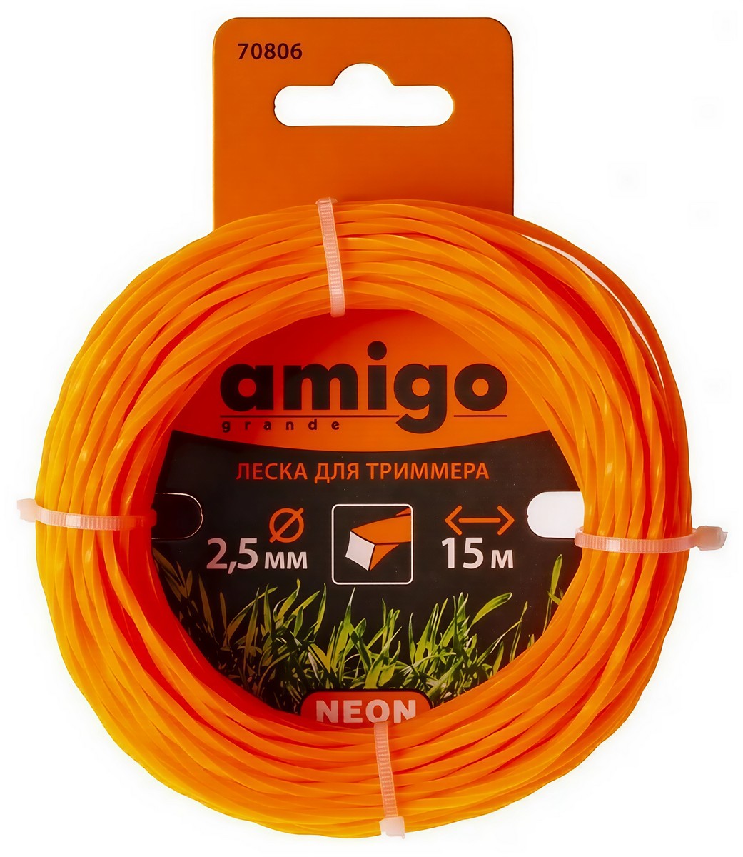 Леска для триммера 3 мм, квадрат, 15 м AMIGO 70230. Сечение "Квадрат" - 4 режущих кромки - повышенная эффективность, снижение шума от работы двигателя, равномерная стрижка. Материал-полиамид.