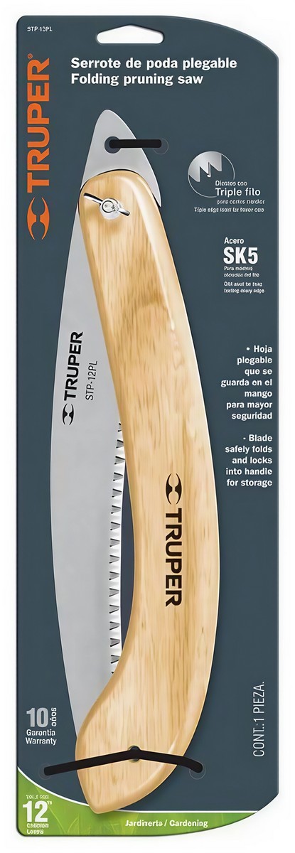 Складная пила TRUPER 300 мм с деревянной рукояткой STP-12PL 18178 предназначена для распила небольших деревянных заготовок, срубания веток и молодых деревьев. Инструмент удобно хранить, так как он обладает складным полотном. Лезвие выполнено из стали марки SK5. Пила оснащена деревянной рукояткой. Длина лезвия - 300 мм.