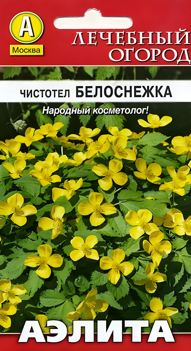 Неприхотливый травянистый многолетник из семейства Маковые. Формирует пышные прямостоячие кусты высотой 50-100 см. Массово цветет в мае-июне, одиночные цветки Ø3-4 см появляются до сентября. Все части растения выделяют на сломе оранжевый млечный сок. С лечебной целью используют траву, корневища и сок, которые содержат комплекс эффективных алкалоидов. Чистотел обладает спазмолитическим, желчегонным, противовоспалительным и бактерицидным действием. Применяется наружно при различных заболеваниях кожи и как внутреннее в виде чаев и настоек (необходима консультация врача). Траву заготавливают с мая по август и сушат в тени, в помещениях с хорошей вентиляцией.