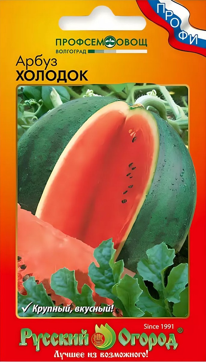 Раннеспелый сорт. Арбузы с отличными вкусовыми качествами. Прекрасно подходит для выращивания в средней полосе. Первый урожай созревает через 90-95 дней после всходов. Растения плетистые, главная плеть достигает 1,8-2,5 м. Плоды массой 2,5-4,5 кг, характеризуются высоким содержанием сахара (около 11 %). Мякоть красного цвета, нежная и зернистая, очень сочная и сладкая. Арбузы можно употреблять как в свежем виде, так и для приготовления холодных напитков и некоторых кулинарных блюд. Сорт устойчив к антракнозу и кратковременным похолоданиям в начале вегетации. Для теплиц посев на рассаду 05-10.IV, высадка 15-25.V. Растения формируют: главный стебель подвязывают к шпалере, боковые побеги ослепляют до высоты 50 см. Последующие боковые побеги прищипывают после женского цветка. Рекомендуется ручное опыление. На растении оставляют 3-4 плода, помещая их в сетки.