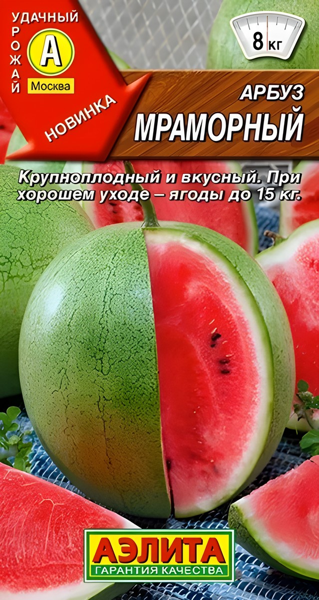 Раннеспелый сорт. Арбузы с отличными вкусовыми качествами. Прекрасно подходит для выращивания в средней полосе. Первый урожай созревает через 90-95 дней после всходов. Растения плетистые, главная плеть достигает 1,8-2,5 м. Плоды массой 2,5-4,5 кг, характеризуются высоким содержанием сахара (около 11 %). Мякоть красного цвета, нежная и зернистая, очень сочная и сладкая. Арбузы можно употреблять как в свежем виде, так и для приготовления холодных напитков и некоторых кулинарных блюд. Сорт устойчив к антракнозу и кратковременным похолоданиям в начале вегетации. Для теплиц посев на рассаду 05-10.IV, высадка 15-25.V. Растения формируют: главный стебель подвязывают к шпалере, боковые побеги ослепляют до высоты 50 см. Последующие боковые побеги прищипывают после женского цветка. Рекомендуется ручное опыление. На растении оставляют 3-4 плода, помещая их в сетки.
