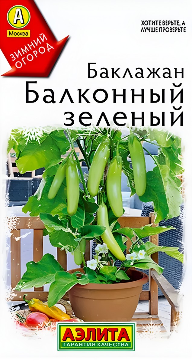 Компактный сорт с мини-плодами. Из крупных белых цветков пучками формируются удлиненные зеленые баклажаны массой 30-50 г (в грунте кусты и плоды крупнее). Мякоть нежная, без горечи. Растения декоративно выглядят в горшечной культуре благодаря волнистой кромке листьев, обилию цветков и завязей. Домашние зелень и овощи — это приятное и полезное дополнение к вашему рациону.