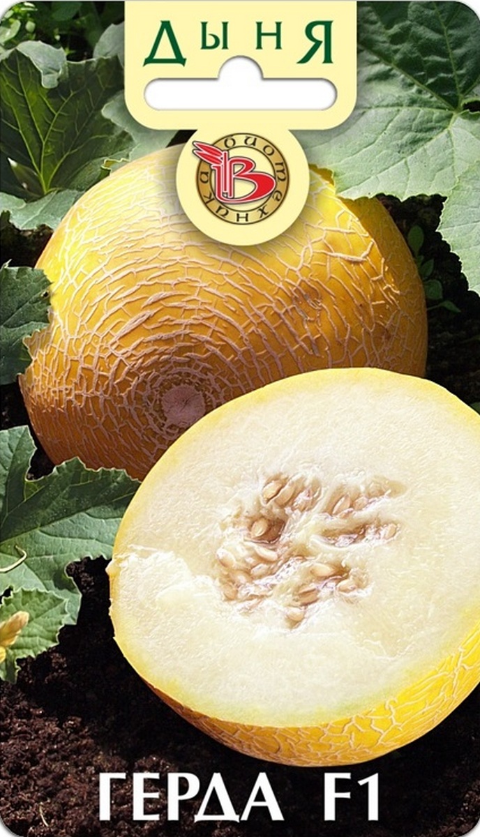 Урожайный гибрид с превосходными вкусовыми качествами. Созревает через 55-60 дней после высадки рассады на постоянное место. Плоды округлой формы средней массой 2-2,5 кг, с жёлто-оранжевой коркой, покрытой светлым сетчатым рисунком. Мякоть отличается плотной структурой, на вкус сочная и очень сладкая. Обладает яр ким ароматом, окрашена в зеленовато- желтый цвет, семенная камера небольшая. Рекомендуется использовать в свежем виде как десерт, для приготовления повидла и цукатов.