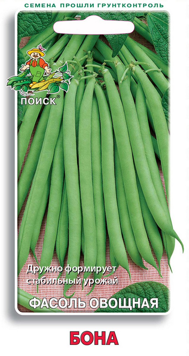 Раннеспелый сорт кустовой формы. Период от всходов до технической спелости 50-55 дней Растение среднеоблиственное, высотой 35-45 см. Прикрепление нижнего боба на высоте 10-13 см. Боб зеленого цвета, длиной 12-14 см, слабоизогнутый, пергаментный слой отсутствует. Семена белого цвета, количество в бобе – 7 шт. Идеальный продукт для консервирования и замораживания.