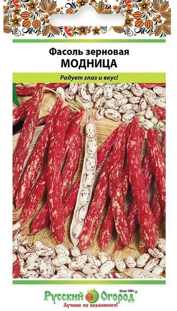 Высокоурожайный сорт овощной фасоли для получения зерна. От всходов до сбора урожая проходит 90-100 дней. Растения крепкие, вьющиеся, высотой 60-80 см. Неприхотливы в уходе, устойчивы к болезням и неблагоприятным погодным условиям. Хорошо растут практически на любых почвах, требуют минимального ухода и поливов. Бобы крупные - до 20 см в длину. Зёрна овальные, плоские, при полном созревании становятся светло-коричневыми с мраморным узором. Варятся быстро, вкус - мягкий, насыщенный, с тонкими ореховыми нотками. Бобы хорошо подходят как для приготовления первых блюд (супов, борщей), так и для гарниров, салатов, запеканок, рагу и даже десертов. Зерна высевают в открытый грунт после весенних заморозков, когда земля прогреется до +10...+12°С. Когда ростки поднимутся на 12–15 см - время для первого окучивания. Сбор урожая проводят несколько раз по мере созревания бобов. Молодые незрелые стручки можно использовать как в спаржевом виде, так и доводить до зерна. Урожайность бобов 0,5-0,6 кг с одного растения.