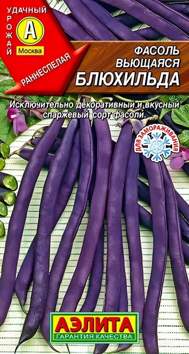 Высокобелковый сахарный сорт, плодоносит примерно через 70 дней после массовых всходов. Отличается отменной урожайностью в любом регионе. Интересен длинными, интенсивно окрашенными лопатками, без пергаментного слоя и волокна. Растения высокорослые, формируют вьющиеся побеги длиной до 3 м. Выращиваются на опорах – на сетке, шпалере, высоких шестах. В пищу используются молодые недозрелые бобы-лопатки и зерно. Прекрасный продукт для домашней кулинарии и консервирования (в т. ч. замораживания). Кроме пищевой ценности, сорт обладает высокой декоративностью. Посев семян в открытый грунт на глубину 2-3 см. Для получения более раннего урожая возможен рассадный метод культивирования. Необходимы регулярные поливы, прополки, рыхления, подкормки. У спаржевой фасоли растянутый период сбора урожая, поэтому его проводят многократно по мере созревания бобов. Частые сборы молодых лопаток стимулируют образование новых.
