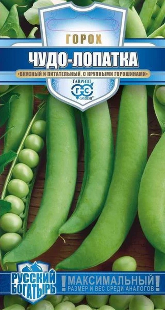 Интересная новинка в сегменте сахарных сортов овощного гороха. Относится к безлисточковым сортам, у которых часть листвы видоизменилась в дополнительные «усы». Стебли соседних растений крепко сцеплены усами, за счет чего повышается устойчивость к полеганию и сорт может выращиваться без опор. Сорт среднеспелый, от всходов до сбора урожая 60-65 дней. Длина стеблей 70-80 см. Бобы-лопатки мясистые, пергаментного слоя не имеют. Семена мозговые, с повышенным содержанием сахаров (до 7-8 %) по сравнению с гладкозерными сортами, число семян в бобе 6-8 шт. Молодая лопатка съедобна полностью, вместе с семенами и сочными створками. Вкус превосходный. Использование самое разнообразное – в сыром виде и после легкой кулинарной обработки в составе салатов, супов, рагу. Это прекрасное сезонное лакомство и отличный продукт для здорового питания. Лопатки пригодны для консервирования (в т.ч. замораживания). Перед посевом семена замачивают в воде до набухания. Высевают семена в открытый грунт на глубину 4-6 см.