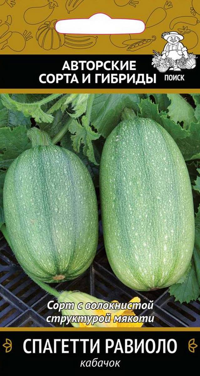 Растение длинноплетистое с большими темно-зелеными листьями. Плод цилиндрической формы, длинной до 20 см, масса до 1 кг. Средне поражается мучнистой росой и бактериозом, слабо гнилями плодов. Выращивается как рассадным способом, так и прямым посевом в грунт. Посев на рассаду – в апреле, высадка рассады в грунт – в мае – июне. Посев непосредственно в грунт в конце мая – июне. Схема посадки 60-60 см. Урожайность 5-7 кг/м2. Интересный сорт, внутренняя структура мякоти плодов волокнистая. Для того, чтобы получить эффект «спагетти» кабачки собирают после того, как они окрасятся в желтый цвет, через 120-130 дней после всходов. Целый кабачок опускают на 30 минут в кипящую воду. Затем разрезав пополам, удаляют семена и выкладывают овощное спагетти на блюдо. Универсального использования.