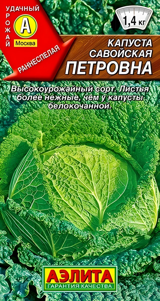 Раннеспелый сорт, от посева до созревания кочанов примерно 110 дней. Кочан округлый, на разрезе желтоватый, средней плотности, массой 1,2-1,4 кг. Наружная кочерыга короткая. Лист пузырчатый, более тонкий и нежный, чем у белокочанной капусты. Используется в свежем виде в салатах и для приготовления солянок, щей, начинок для пирогов. Самые аппетитные голубцы получаются именно при использовании листьев савойской капусты. Она богата витаминами С, В1, РР, каротином, солями калия, магния, кальция, железа, фосфора. Вкус отличный. Урожайность высокая – 4,5-5,2 кг/м2. Посев. Выращивается через рассаду. Очень важно поддерживать температурный режим: днем 15-18°С, ночью 12-14°С. Высаживают рассаду в открытый грунт в возрасте 35-40 дней, в фазе 5-6 настоящих листьев. В течение всего сезона нуждается в регулярных обильных поливах. Растениям необходимы своевременные прополки, рыхления и подкормки.