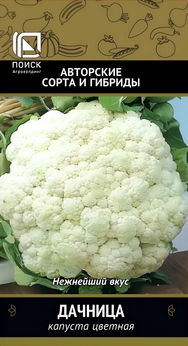 Ранний деликатес с грядки или парника! Созревает на 60-65 день после высадки рассады при выращивании летом, 70 день — весной. Головка округлая, плотная, гладкая, массой до 0,9-1,1 кг, ровной молочно-белой окраски благодаря хорошему покрытию широких листьев. Обладает превосходным вкусом, используется в кулинарии и консервировании, можно замораживать. Рекомендован в качестве ранней рыночной продукции.Цветная капуста — холодостойкое растение, требовательное к влаге и плодородию почвы. Выращивают прямым посевом в открытый грунт или через рассаду. Лучшие предшественники — бобовые, тыквенные, лук. На рассаду семена высевают в торфяные горшочки в апреле на глубину 1,0-1,5 см. При безрассадном способе посев проводят в начале мая на глубину 1,0-1,5 см. Высадку в открытый грунт проводят через 35-40 дней после появления всходов (в фазе 4-5 настоящих листьев). Схема посадки 60-30 см.
