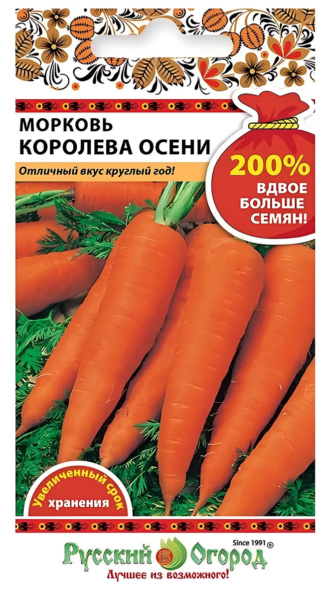 Среднеспелый (100-115 дней) сорт сортотипа Нантская с повышенным содержанием полезного каротина. Ценится за полезные корнеплоды густо-оранжевого цвета, отменный вкус мякоти и отличную лежкость. Ровные, гладкие корнеплоды имеют привлекательный товарный вид. Сладкий вкус и сочность мякоти сохраняется на высоком уровне вплоть до нового урожая. При ранних посевах может выращиваться на пучковую продукцию, при поздних - для зимнего хранения. Розетка листьев полураскидистая. Корнеплод удлиненно-конический, со скругленным кончиком, массой 100-210 г. Сердцевина и кора темно-оранжевые, отличных вкусовых качеств. Сорт рекомендуется для использования в свежем виде, в соках, пюре,супах, кулинарных блюдах.