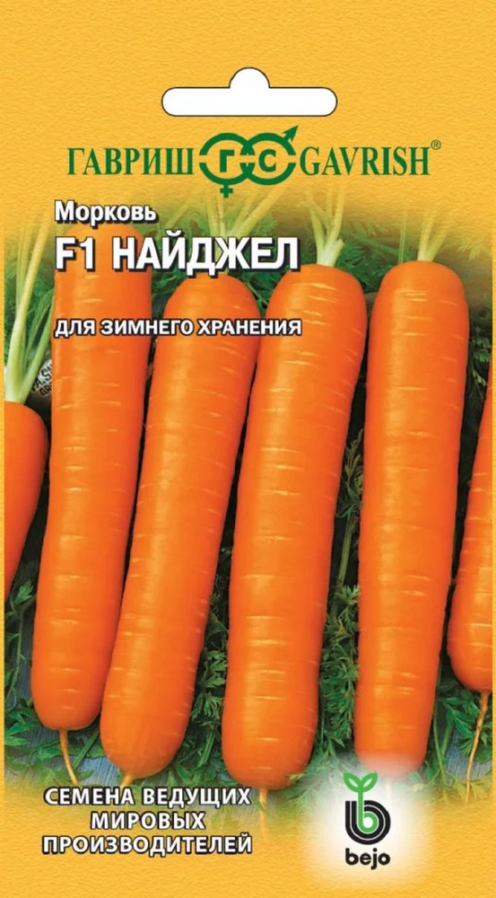 Среднеранний (110 дней от всходов до уборки урожая) гибрид для использования в свежем виде и длительного зимнего хранения. Розетка листьев прямостоячая. Корнеплод средней длины, цилиндрический с тупым кончиком (сортотип Нантская), оранжевого цвета, длиной 15-20 см, массой 80-190 г. Мякоть плотная, сладкая, ароматная, сочная. Достоинства: специальный гибрид для зимнего хранения, корнеплоды одинаковые, ровные, с высоким содержанием сахара и каротина. Урожайность 2,0-3,9 (до 9,9) кг/м?. Посев семян в грунт производится в конце апреля – начале мая на глубину 1 см, расстояние между рядками 18-20 см. Подросшие всходы прореживают, оставляя между растениями по 5-6 см.