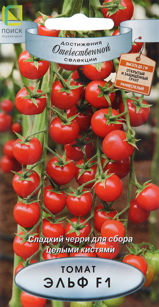 Сладкий черри для сбора целыми кистями. Раннеспелый гибрид. Период от всходов до начала плодоношения 90-95 дней. Растение индетерминантного типа роста, междоузлия средней длины. Плоды темно-красной окраски, округлые или слегка овальные, гладкие, масса 15-20 г. Очень однородные по размеру и форме, собраны в простые, плотные, красивые кисти по 14-16 плодов устойчивых к растрескиванию и осыпанию. Гибрид устойчив к ВТМ, фузариозному увяданию, кладоспориозу. Пригоден для возделывания во всех оборотах, по малообъемной технологии, на грунтах. Плотный, транспортабельный, десертного вкуса. Универсальное использование.