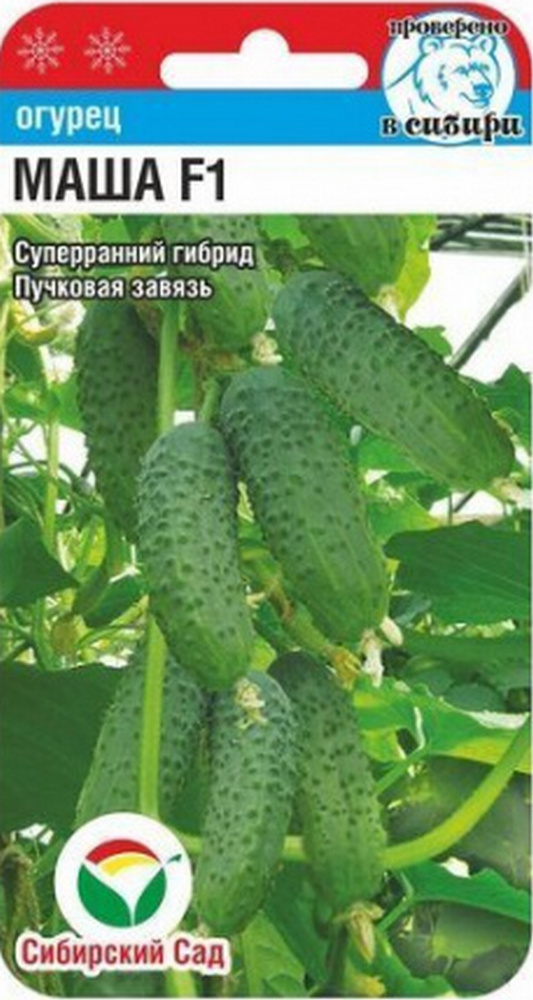 Ранний (45-55 дней от массовых всходов до начала технической спелости) партенокарпический гибрид для открытого грунта, теплиц и временных пленочных укрытий. Растение длинноплетистое, среднерослое, женского типа цветения. Зеленец красивый, цилиндрический, темно-зеленый, с короткими светлыми полосами, мелкобугорчатый, опушение белое. Масса зеленца 95-100 г, длина до 9,5 см. Ценность гибрида: высокая урожайность, отличные вкусовые качества, устойчивость к болезням. Рекомендуется для производства корнишонов, для салатов и консервирования. Урожайность 8,5-11,2 кг/м2. Посев на рассаду проводят в конце апреля. Высадка рассады — в конце мая-начале июня в фазе 3-4-х листьев. Посев непосредственно в грунт — в мае-июне по схеме 30х70 см. Семена после уборки сохраняют всхожесть в течение 7 лет при оптимальных условиях хранения. Рекомендуется увеличить норму высева по окончании срока годности.