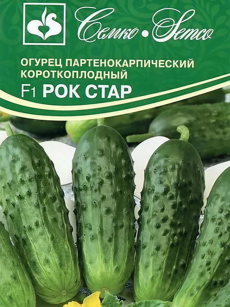 Огурец Рок Стар F1 - ранний, самоопыляемый (партенокарпический), пучковый гибрид для защищенного грунта корнишонного типа. От всходов до начала плодоношения 40-42 дня. Гибрид женского типа цветения, среднеплетистый. Зеленцы цилиндрические, крупнобугорчатые, тёмно-зелёные с небольшими полосами, длиной 8-12 см, диаметром 3,5-4 см, массой 90-105 г, не перерастают, генетически без горечи. В одном узле формируется 2-3 плода. Товарность и транспортабельность плодов высокие. Вкусовые качества свежих и консервированных плодов отличные. Огурец Рок Стар F1 устойчив к мучнистой росе (Px) и вирусу обыкновенной огуречной мозаики (CMV). Один из лучших чёрношипых партенокарпических гибридов - самый вкусный самоопыляемый огурец для засолки. Рекомендуется для выращивания в открытом грунте и плёночных теплицах. Плотность посадки 3,6-4 раст./м2. Урожайность в плёночных теплицах 13-15 кг/м2.