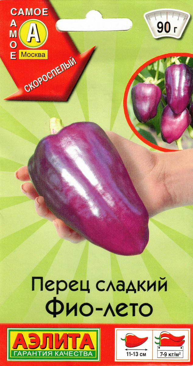 Отличное дополнение в коллекцию сладкого перца! Сорт добавит красочный и необычный внешний вид вашему огороду и теплице. Рекомендуется для пленочных укрытий и открытого грунта. Очень ранний – от всходов до начала сбора плодов 100-110 дней. Растение формирует в теплице низкий, высотой 40-50 см, приподнятый кустик. Плоды хрустящие и сочные, массой 70-90 г, очень сладкие, толщина стенки 5-7 мм. В стадии потребительской спелости фиолетовые, позже становятся коричнево-красными. Сорт разнообразит свежие летние салаты и гарниры, подходит для фарширования и запекания. Урожайность под пленкой – 7-9 кг/м2.