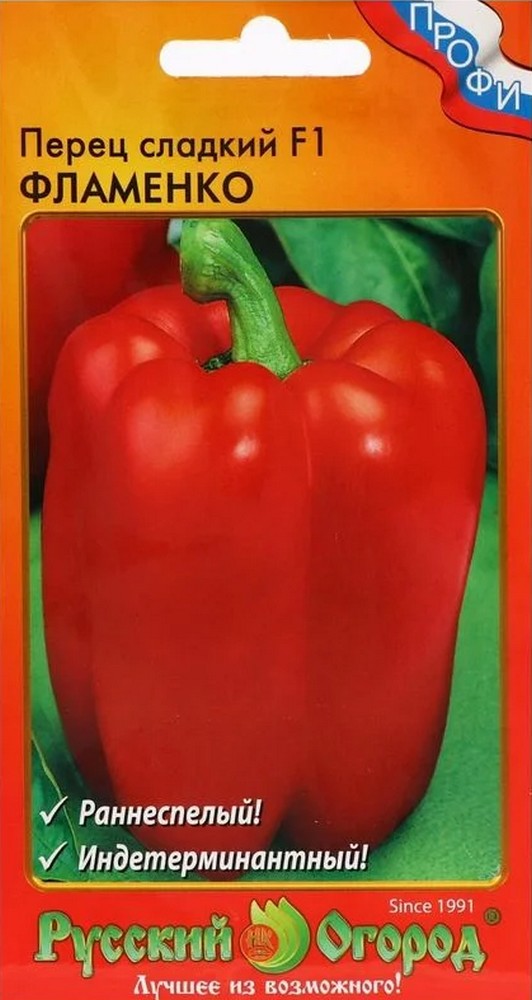 Перец Фламенко F1 раннеспелый и высокоурожайный гибрид. Плод размером 10-15 см состоит из 3-4 долей с сочными и мясистыми стенками толщиной 8 мм. Урожайность в зависимости от условий составляет 10-13 кг кв.м. Устойчив к вирусу табачной мозаики.