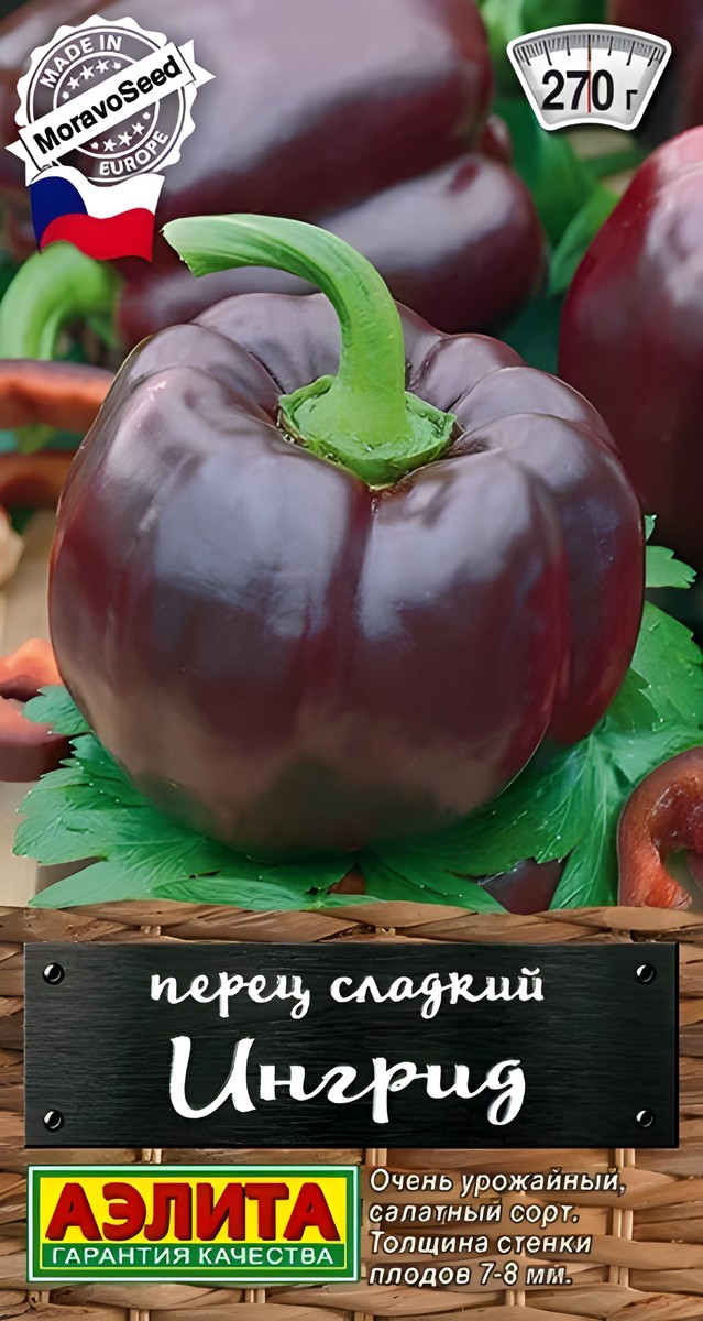 Мегаурожайный салатный сорт сладкого перца чешской селекции от компании MoravoSeed для теплиц и открытого грунта. Компактные, крепкие кусты высотой 50-60 см образуют множество завязей, невзирая на переменчивость погодных условий. Сорт среднеспелый: от всходов до созревания урожая проходит 130-140 дней. Плоды массой 240-270 г, глянцевые, сладкие, очень ароматные и сочные. В технической спелости темно-зеленые, в биологической – насыщенного шоколадного оттенка. Толщина стенки достигает 7-8 мм. Урожайность в защищенном грунте 10-12 кг/м2.
