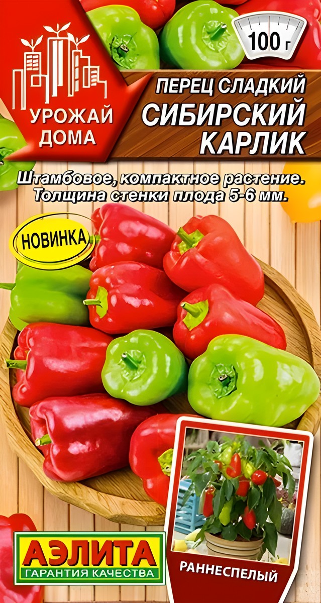 Перец сладкий Сибирский карлик, 10 шт. Урожай дома