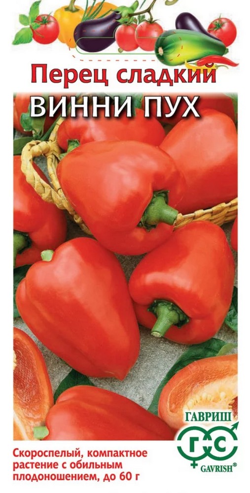 Среднеспелый (160-178 дней) сорт для открытого и защищенного грунта. Растение компактное, высотой 45-60 см. Плоды плоскокруглые, темно-красные, массой 113-166 г. толщина стенки 8-10 мм, сочные, ароматные, сладкие, не поражаются вершинной гнилью. Рекомендуется для использования в свежем виде, консервировании, заморозки и фарширования. Предпосевная подготовка: для стимулирования прорастания перед посевом семена перца замочить на 15 минут в 1% растворе марганцовки, затем промыть и подсушить. Посев на рассаду: семена раскладывают на влажный плодородный рыхлый нейтральный грунт, предварительно хорошо уплотнив основание. Присыпают слоем грунта 0,8-1 см, уплотняют, обильно поливают, накрывают пленкой и размещают в теплом месте. Оптимальная температура для проращивания перца 25-27°С. При температуре грунта 15°С и ниже появление всходов затягивается до 4-6 недель. Пикировка/перевалка: сеянцы переваливают в отдельные стаканы 0,5 л грунта в фазе 2-4 настоящих листьев без заглубления. Корневая шейка должна оставаться на