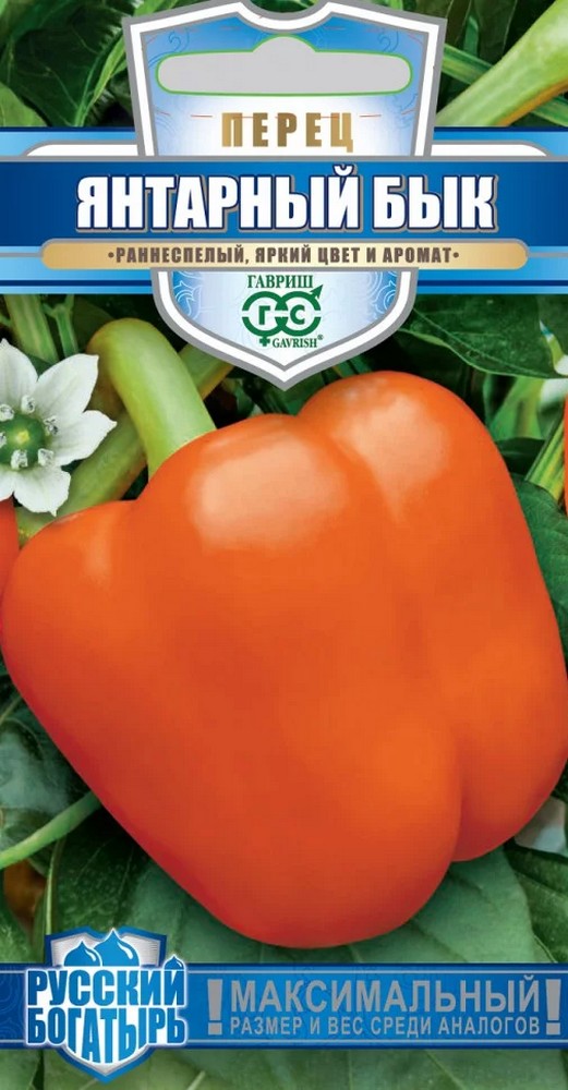 Перец сладкий Янтарный бык, 10 шт. Русский богатырь.