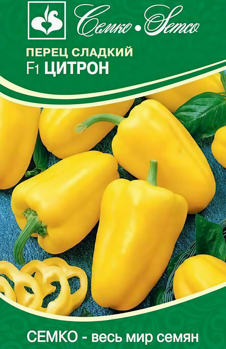 Перец сладкий Цитрон F1 - ранний гибрид для открытого грунта и теплиц. От всходов до технической спелости 92-100, до биологической - 110-120 дней. Растение среднерослое, высотой 50-60 см, компактное, штамбовое. Плоды 2-4-камерные, усечённо-пирамидальной формы с небольшой продольной ребристостью, в технической спелости - светло-зелёные, в биологической - желтые. Масса плода в технической спелости 90-110 г, в биологической - 120-140 г. Кожица плотная, толщина стенки 6-8 мм. Вкус отличный, содержание витамина С до 160 мг%. Перец сладкий Цитрон F1 толерантен к вирусу табачной мозаики (TMV) и вертициллёзному увяданию (Va,Vd). Предназначен для выращивания во всех типах теплиц и в открытом грунте. Используется для свежего потребления, домашней кулинарии, фарширования и консервирования. Схема посадки 70х25-30 см. Урожайность в плёночных теплицах 7-8 кг/м2, в открытом грунте 6-7 кг/м2.