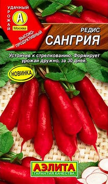 Ультраскороспелый сорт, лидер на рынке ранней продукции. Рекомендуется для всех регионов. От всходов до уборки 16-18 дней. Корнеплоды гладкие, с тоненьким хвостиком, массой 10-12 г. Мякоть белоснежная, хрустящая, сочная, долго не дряблеет. Вкус умеренно острый, со сладостью. Сорт устойчив к цветушности и растрескиванию корнеплодов. Урожайность 1,2-1,5 кг/м 2. После появления 1-го настоящего листа всходы прореживают. Чтобы получать урожай в непрерывном режиме, семена высевают несколько раз за сезон с интервалом 10-15 дней.