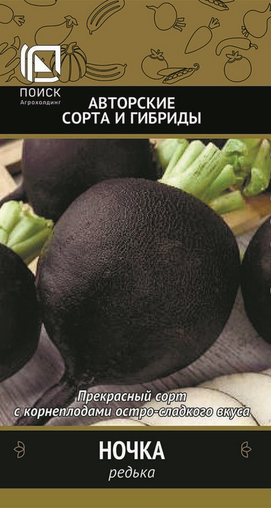 Среднеспелый сорт, который сочетает в себе высокие товарные качества, повышенную продуктивность, быстрый рост и целебные свойства. Период от полных всходов до начала технической спелости 60-70 дней. Корнеплоды выравненные, цилиндрической формы, черные, массой 170-210 г. Мякоть белая, плотная, хрустящая, сочная, слабоострого вкуса. Корнеплоды не образуют ответвлений, не растрескиваются, идеальны для салатов, долго хранятся без потери вкусовых качеств. Посев в открытый грунт для летнего потребления проводят в конце апреля, для осеннее - зимнего - c середины июня, на глубину 2 см. В фазе 2-3-х настоящих листьев всходы прореживают, оставляя между растениями 15 см. Уборку урожая проводят по мере созревания корнеплодов.