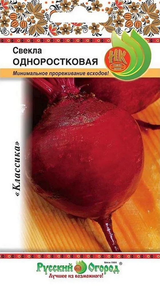 Позднеспелый столовый сорт с периодом вегитации 82-130 дней. Уникальность сорта в том, что из одного семени всегда вырастает только одно растение. Прореживание всходов - минимальное! Корнеплоды выравненные, крупные, массой 311 - 610 г, округло-овальные и плоско-округлые. С тёмно-бордовой, плотной и сочной мякотью нежной консистенции. Вкус хороший, сладковатый. Идеально подходит для любых домашних блюд. Урожай хранится несколько месяцев без потери товарных и вкусовых качеств. Используется для осенне-зимнего потребления. Урожайность более 9 кг/кв.м.