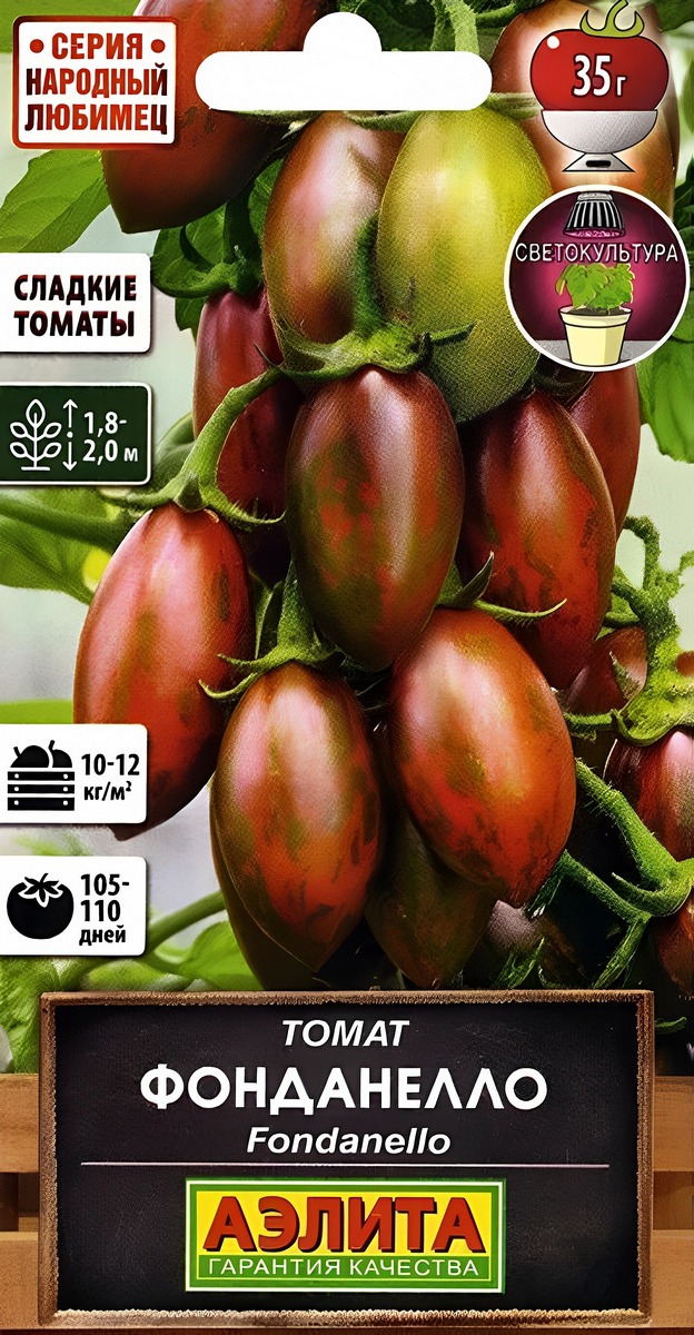 Очень сладкие томаты! Фонданелло становится фаворитом у всех, кто хоть раз его выращивали пробовал! Бесподобный сладкий вкус, оригинальная окраска и форма плодов – все это делает сорт поистине уникальным. Раннеспелый, от всходов до начала уборки 105-110 дней. Растения индетерминантные, высотой 1,8-2 м. Томаты массой 30-35 г, собраны в кисти по 8-13 штук. Мякоть плодов глубокого красного, почти бордового цвета. Изумительный вкус плодов определяется высоким содержанием суммы сахаров, которая очень характерна для сортотипа Черри. Томаты сорта Фонданелло превосходно подходят для салатов, закусок и консервирования.