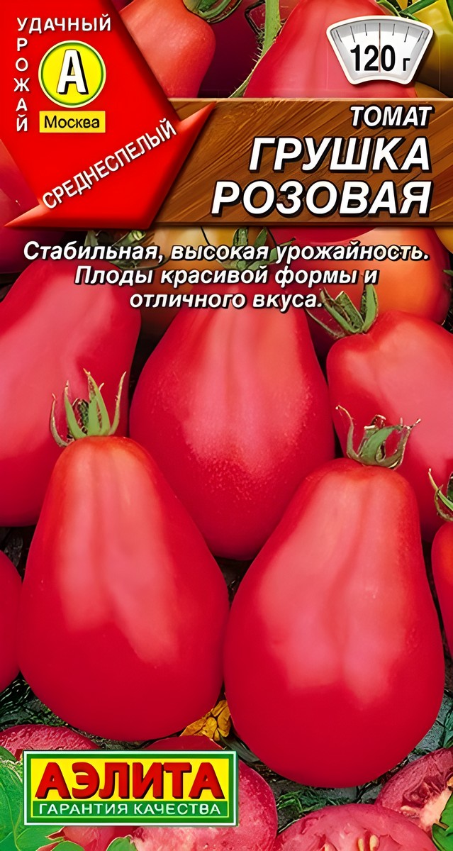 Среднеспелый индетерминантный сорт для открытого и защищенного грунта. Отличается стабильно высокой урожайностью (11-14 кг/м2 в теплице) и необычной грушевидной формой плодов. Первые томаты созревают через 110-115 дней после появления всходов. Они мясистые и сладкие, с очень нежной и ароматной мякотью. Средняя масса плодов 100-120 г. Красивые томаты необыкновенно вкусные в свежих салатах.