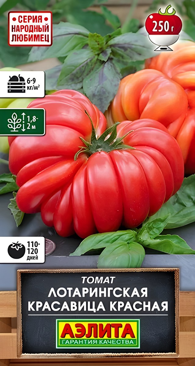 Рекомендуется для выращивания в закрытом и открытом грунте. Индетерминантный, в теплице высотой 1,8-2,0 м. Томат среднеспелый – формирует первый урожай через 110-120 дней. Плоды сильноребристые, ярко-красного цвета, массой 200-250 г (отдельные плоды до 400-500 г). Не растрескиваются и легко переносят транспортировку. Мякоть зернистая, плотная и сладкая. Сорт идеально подходит для украшения блюд. Урожайность в теплице 6-9 кг/м2.