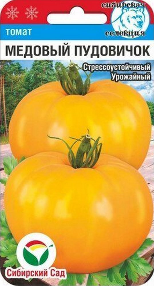 Крупноплодный, среднеспелый сорт для теплиц и открытого грунта. Выделяется крупными почковидными плодами теплого медово-желтого цвета, массой до 600 г. Мякоть томатов очень приятная, сладкая, почти без кислот, полезна для питания людей с заболеваниями кишечного тракта. Растение высотой 120-160 см, в зависимости от условий выращивания. Урожайность составляет 4-5 кг с растения.