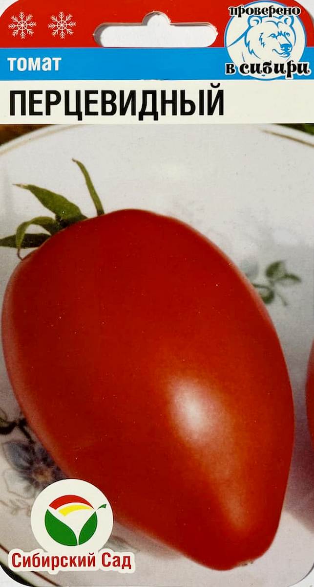 Томат Перцевидный - это популярный сорт с мясистыми и сладкими плодами перцевидной формы, красного цвета, массой 80-100 гр. Плоды практически не содержат жидкости и мало семян. Сорт универсального назначения, очень урожайный, среднеспелый. Растение индетерминантное, соцветие простое и промежуточного типа, первое соцветие над 9 листом, последующие через 3 листа. Плод ярко-красный, цилиндрический со сбегом, слаборебристый, массой до 100 г. Вкусовые качества томатов очень хороши, плоды используются для приготовления свежих салатов, засола и консервирования, пригодны для фарширования. Сорт рекомендуется для выращивания в открытом и защищенном грунте. Семена томата Перцевидный на рассаду высевают за 50-60 дней до высадки растений на постоянное место. Оптимальная постоянная температура прорастания семян 23-25°С. Томат Перцевидный требует пасынкования и подвязки. Сорт хорошо реагирует на полив и подкормки комплексными минеральными удобрениями. Для ускорения процесса всхожести семян, оздоровления растений, улучшения