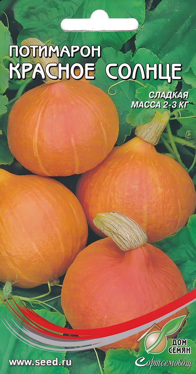 Среднеспелый сорт (120-130 дней от всходов). Растение плетистое. Плоды массой 2-3 кг, округлые. Кожура красно-оранжевая, мякоть желтая, плотная, сладкая. Посев на рассаду - в последней декаде апреля в горшочки. Температурный режим: во время прорастания - 20-25 С, после появления всходов -18-20 С. После окончания угрозы весенних заморозков высаживают в хорошо заправленную органикой, прогретую почву или в теплую компостную кучу по схеме 1,0х1,4 м. Размещение- на хорошо освещенном месте. Уход: прищипка (удаляют точки роста над 4-6-м листом, а после образования 3-5 завязей - все точки роста), поливы, подкормки в течение сезона комплексными минеральными удобрениями. Сбор урожая по мере налива и созревания плодов.