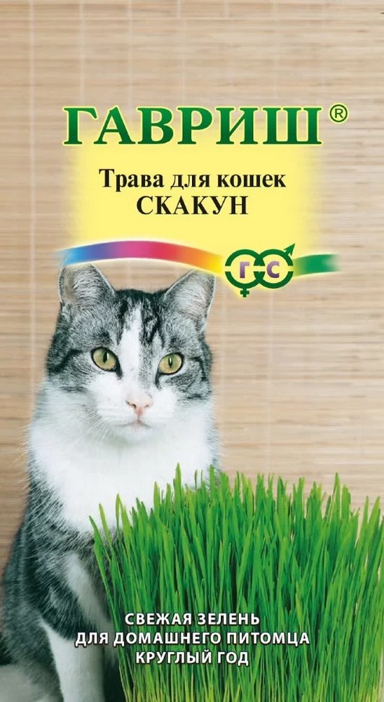 Трава нравится всем кошкам, более того, они испытывают в ней потребность. Желательно, чтобы кошка всегда имела доступ к свежей траве. А если владелец не позаботится об этом, то объектом гастрономических интересов Мурки могут стать комнатные растения, многие из которых ядовиты, или (если кошка гуляет) - травка с ближайшего газончика, которая скорее повредит животному. Поэтому самым правильным решением будет завести специальный горшочек или ящик, предназначенный для выращивания свежей травки. Содержимое пакета посеять в любой субстрат (речной песок, земля и др.), обильно полить. При достижении травой высоты 10 см (через 10-15 дней после посева) кошка может лакомиться. Кошки могут питаться как с грядки, так и срезанной, измельченной травой, которую добавляют в корм. Выращивать свежую зелень можно круглый год. Свежая трава регулирует процесс пищеварения и работу кишечника.